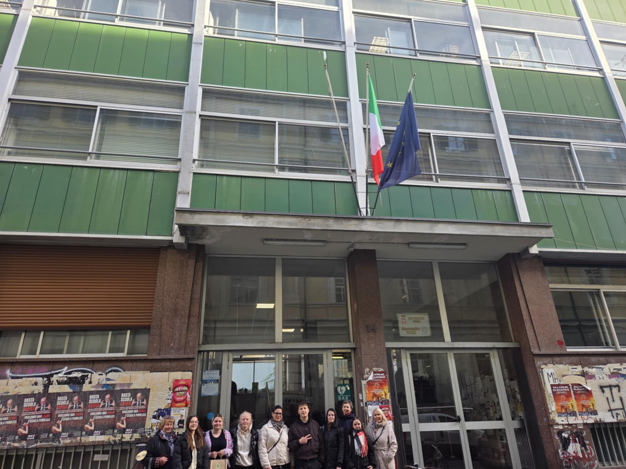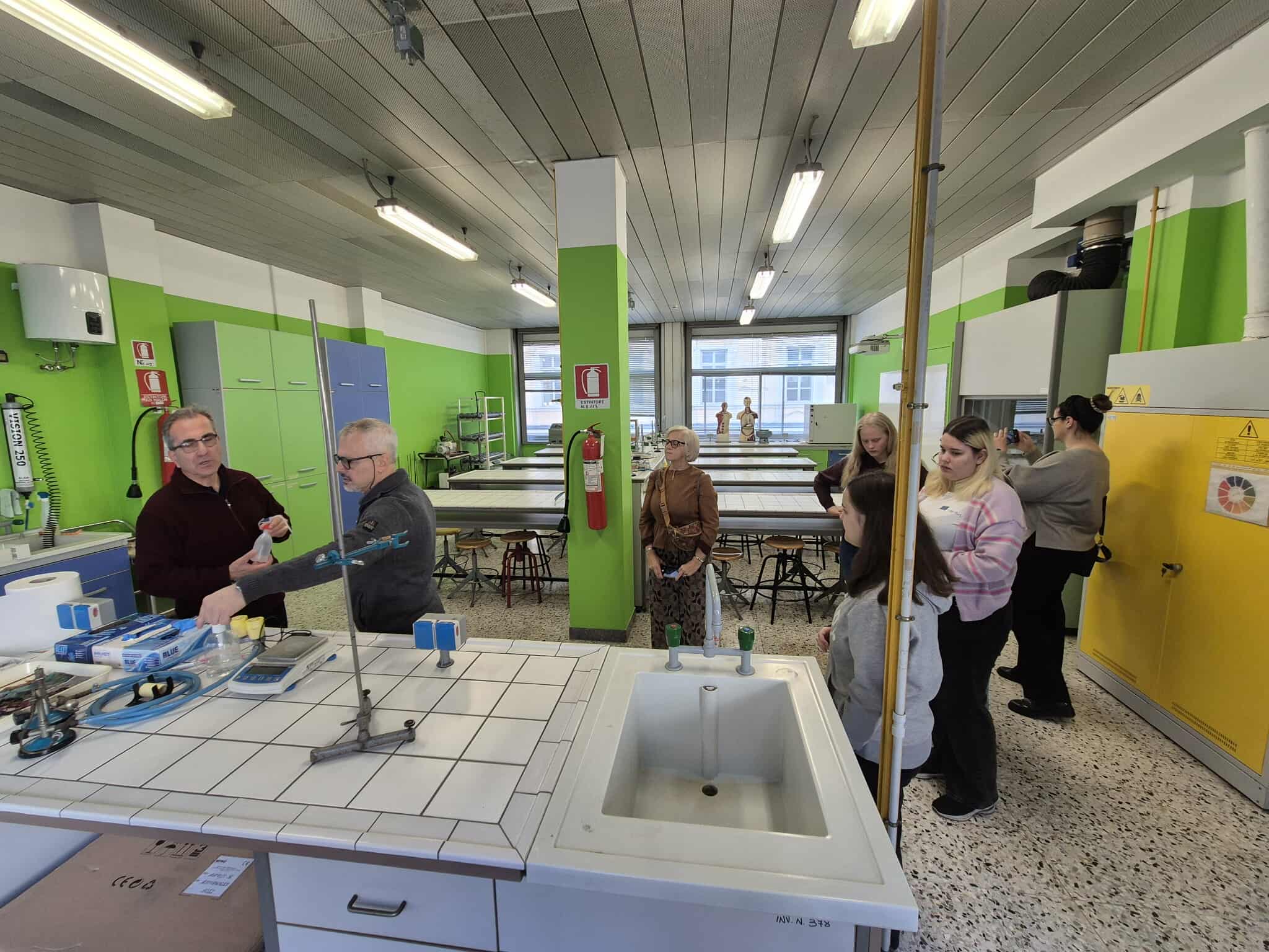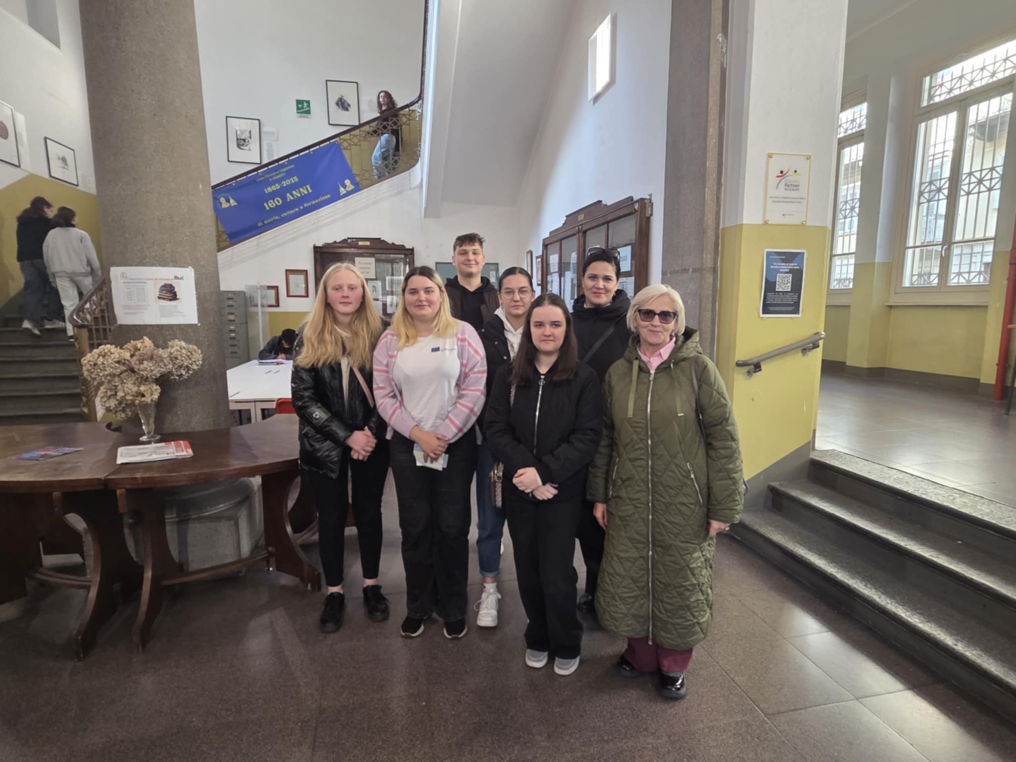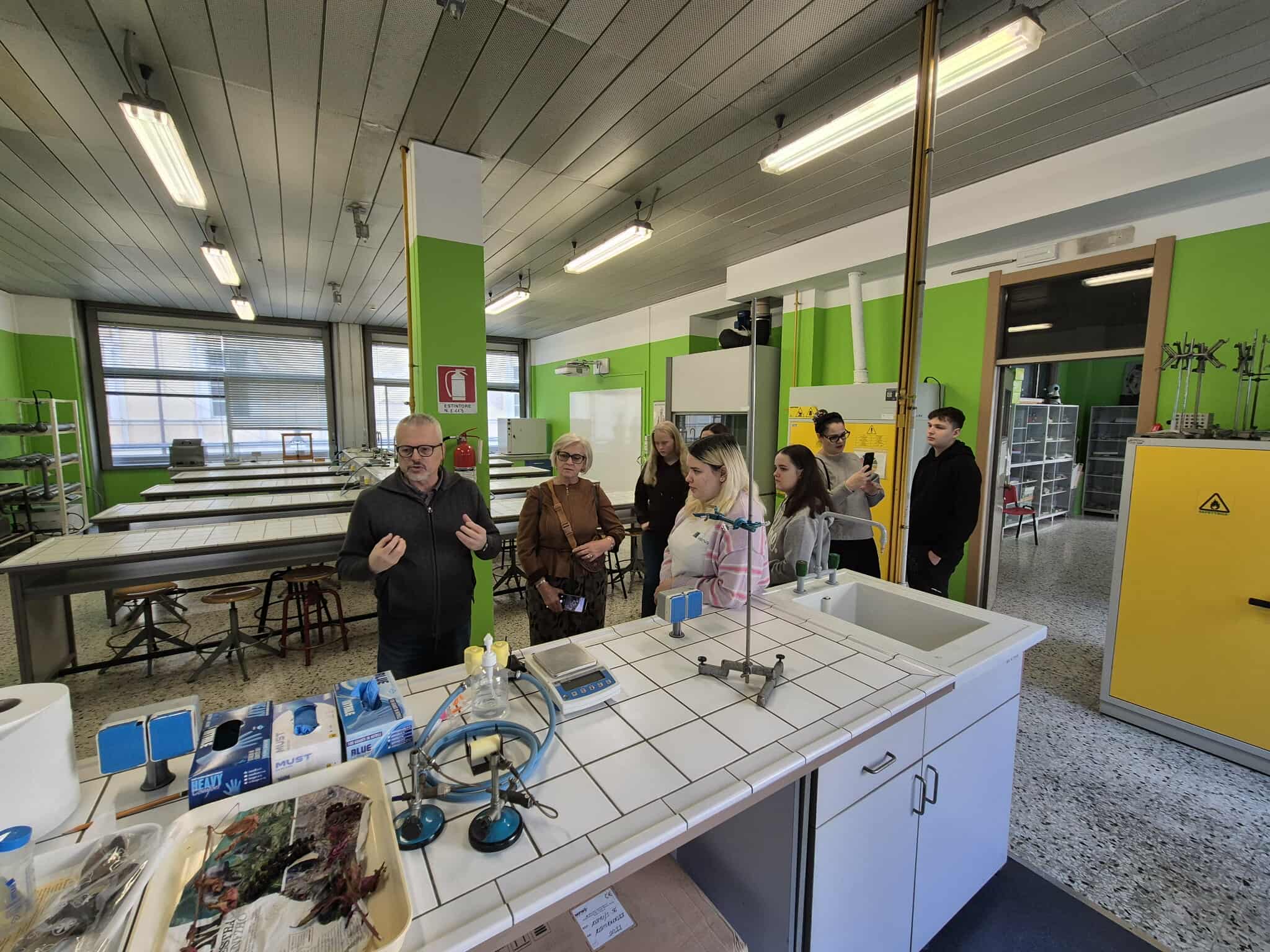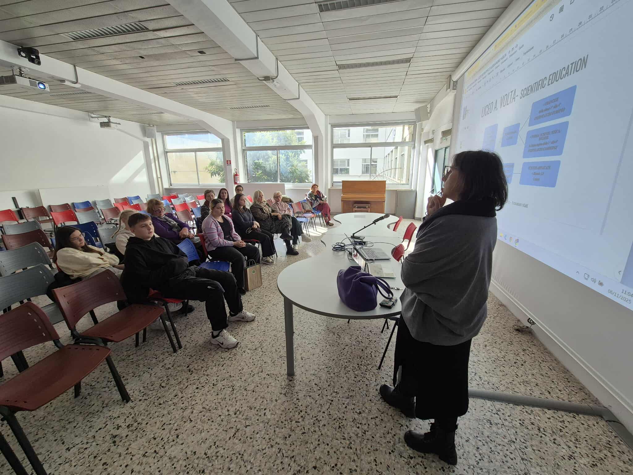 Erasmus+ programos projekto mokiniai dalyvavo prestižinio Liceo classico “Vincenzo Gioberti” (Turinas) ugdymo veiklose. Licėjus įkurtas XIX a. pabaigoje; pavadintas žymaus italų filosofo, politiko Vincenzo Gioberti garbei. Licėjus garsėja savo humanitarine tradicija, akademine reputacija ir istorine aplinka. Pastatas yra istorinis, būdingas Turino tradicinei architektūrai: aukšti koridoriai, senos klasės su originaliomis medinėmis detalėmis. Licėjuje stiprus humanitarinių mokslų (lotynų, graikų kalbų dėstymas), daug pamokų vyksta anglų kalba. Be to, svarbu paminėti licėjaus ryšį su Turino universitetu: licėjaus absolventai renkasi studijas klasikiniame Turino universitete, kuris įsikūręs kitoje nuo licėjaus gatvės pusėje. (P.S. buvodami Turino mieste projekto dalyviai matė išskirtinai pasipuošusius universiteto absolventus: ant galvų dėvinčius vainikus – universiteto baigimo simbolį). Projekto dalyviai keletą dienų dalyvavo anglų kalbos pamokose. Patys pristatė Lietuvą, kultūrą, kultūrinį paveldą, pomėgius, diskutavo aktualiomis tvarumo, gamtosauginėmis temomis. Pristatė Lietuvos televizijos sukurtą filmą apie Lietuvą bei padovanojo filmo įrašą (USB formatu).