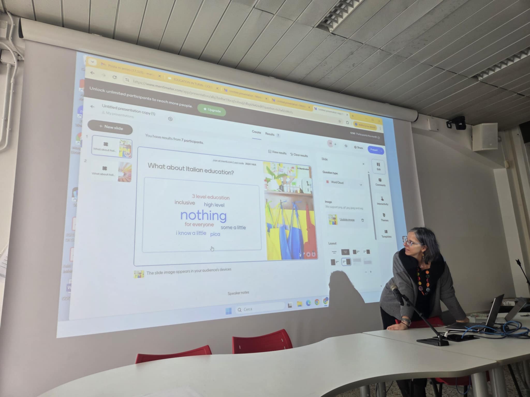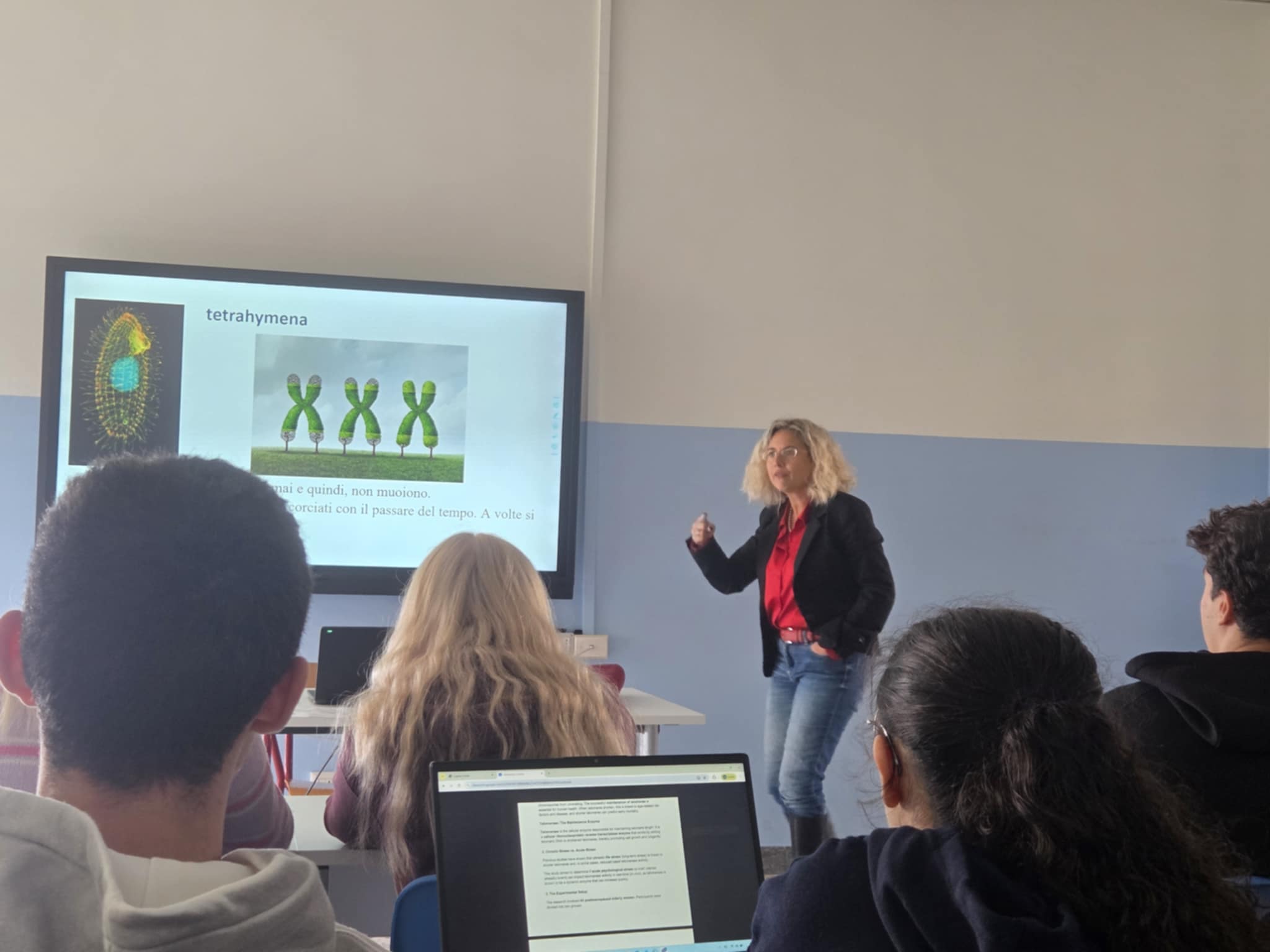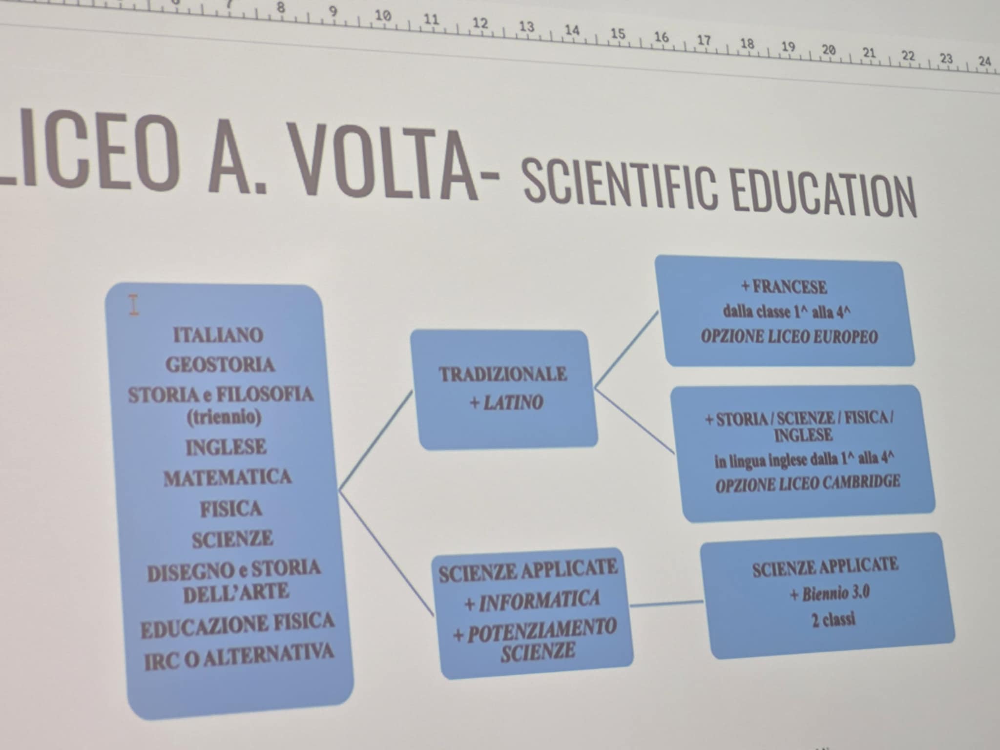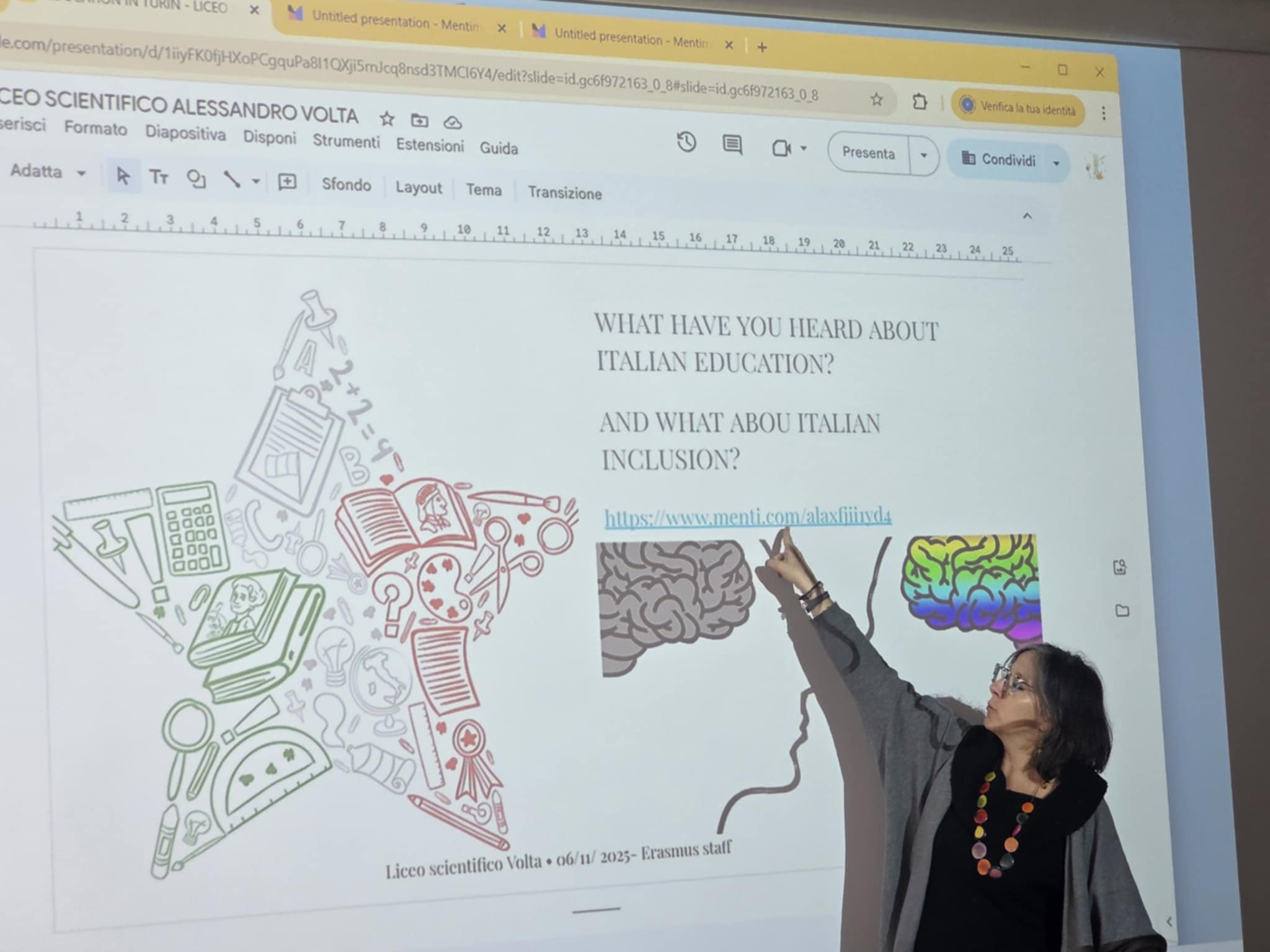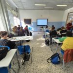 Erasmus+ programos projekto mokiniai dalyvavo prestižinio Liceo classico “Vincenzo Gioberti” (Turinas) ugdymo veiklose. Licėjus įkurtas XIX a. pabaigoje; pavadintas žymaus italų filosofo, politiko Vincenzo Gioberti garbei. Licėjus garsėja savo humanitarine tradicija, akademine reputacija ir istorine aplinka. Pastatas yra istorinis, būdingas Turino tradicinei architektūrai: aukšti koridoriai, senos klasės su originaliomis medinėmis detalėmis. Licėjuje stiprus humanitarinių mokslų (lotynų, graikų kalbų dėstymas), daug pamokų vyksta anglų kalba. Be to, svarbu paminėti licėjaus ryšį su Turino universitetu: licėjaus absolventai renkasi studijas klasikiniame Turino universitete, kuris įsikūręs kitoje nuo licėjaus gatvės pusėje. (P.S. buvodami Turino mieste projekto dalyviai matė išskirtinai pasipuošusius universiteto absolventus: ant galvų dėvinčius vainikus – universiteto baigimo simbolį). Projekto dalyviai keletą dienų dalyvavo anglų kalbos pamokose. Patys pristatė Lietuvą, kultūrą, kultūrinį paveldą, pomėgius, diskutavo aktualiomis tvarumo, gamtosauginėmis temomis. Pristatė Lietuvos televizijos sukurtą filmą apie Lietuvą bei padovanojo filmo įrašą (USB formatu).