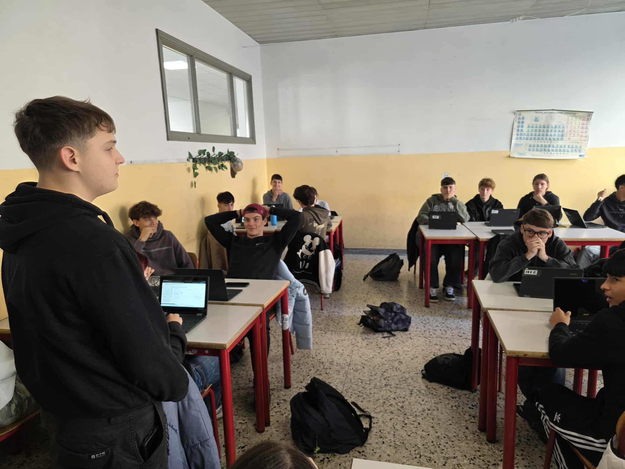 Dronai pamokose turi daugybę privalumų ir yra įdomus bei efektyvus mokymo įrankis. Instituto Omnicomprensivo Mauro del Giudice (Rodi del Gargano; Italija) mokiniai mokosi dronų programavimo. Lankydamiesi pamokose Erasmus+ programos mokiniai: Haroldas, Ema, Jolanta, Rokas, Tautvydas, turėjo galimybę išbandyti dronų galimybes. Jolanta drąsiai ėmė į rankas pultą ir kėlė droną į aukštį: bandė juo apibrėžti kvadratą. Be abejo, sudėtingesnius dronų valdymo triukus demonstravo italų mokyklos mokiniai.