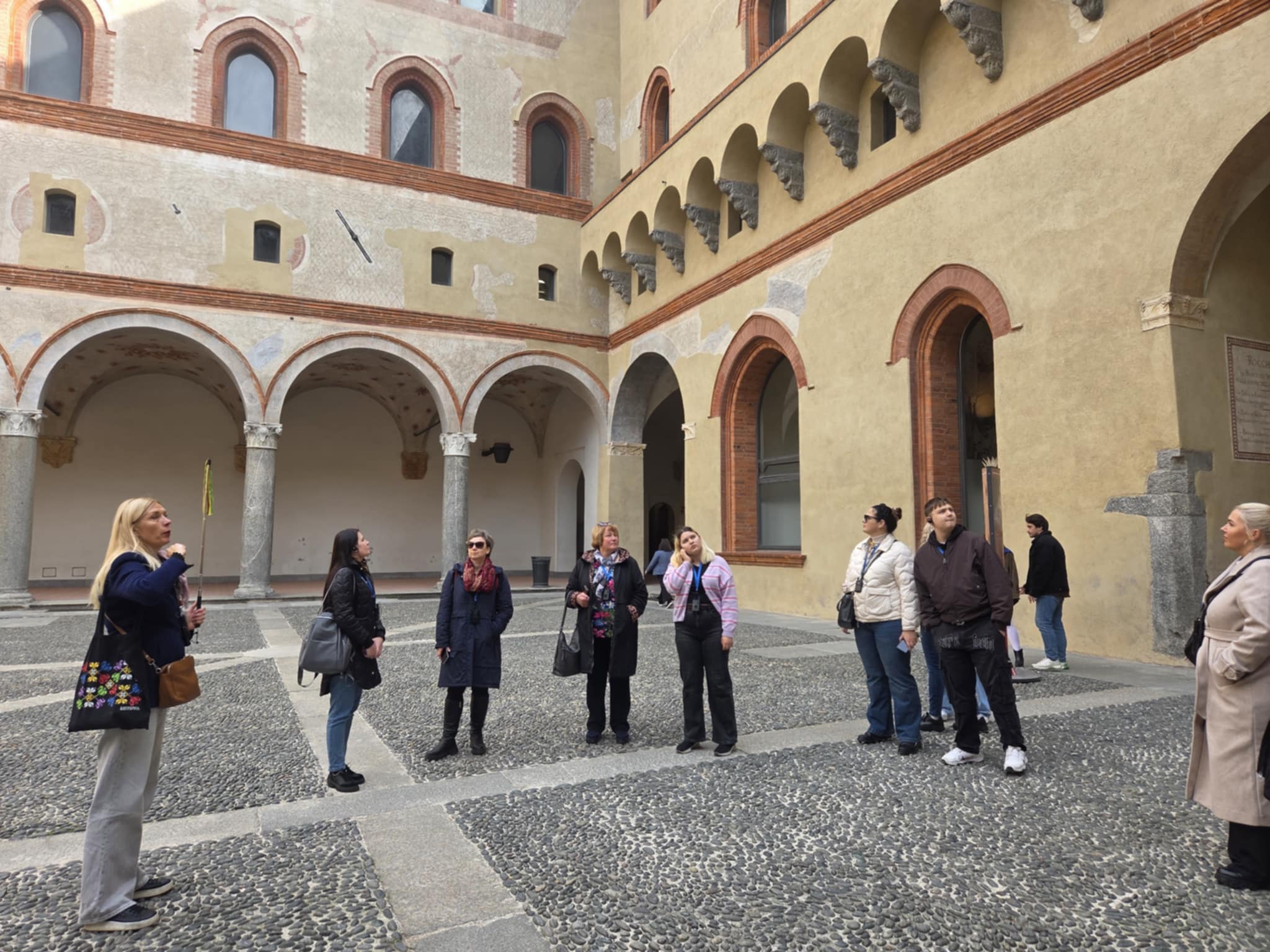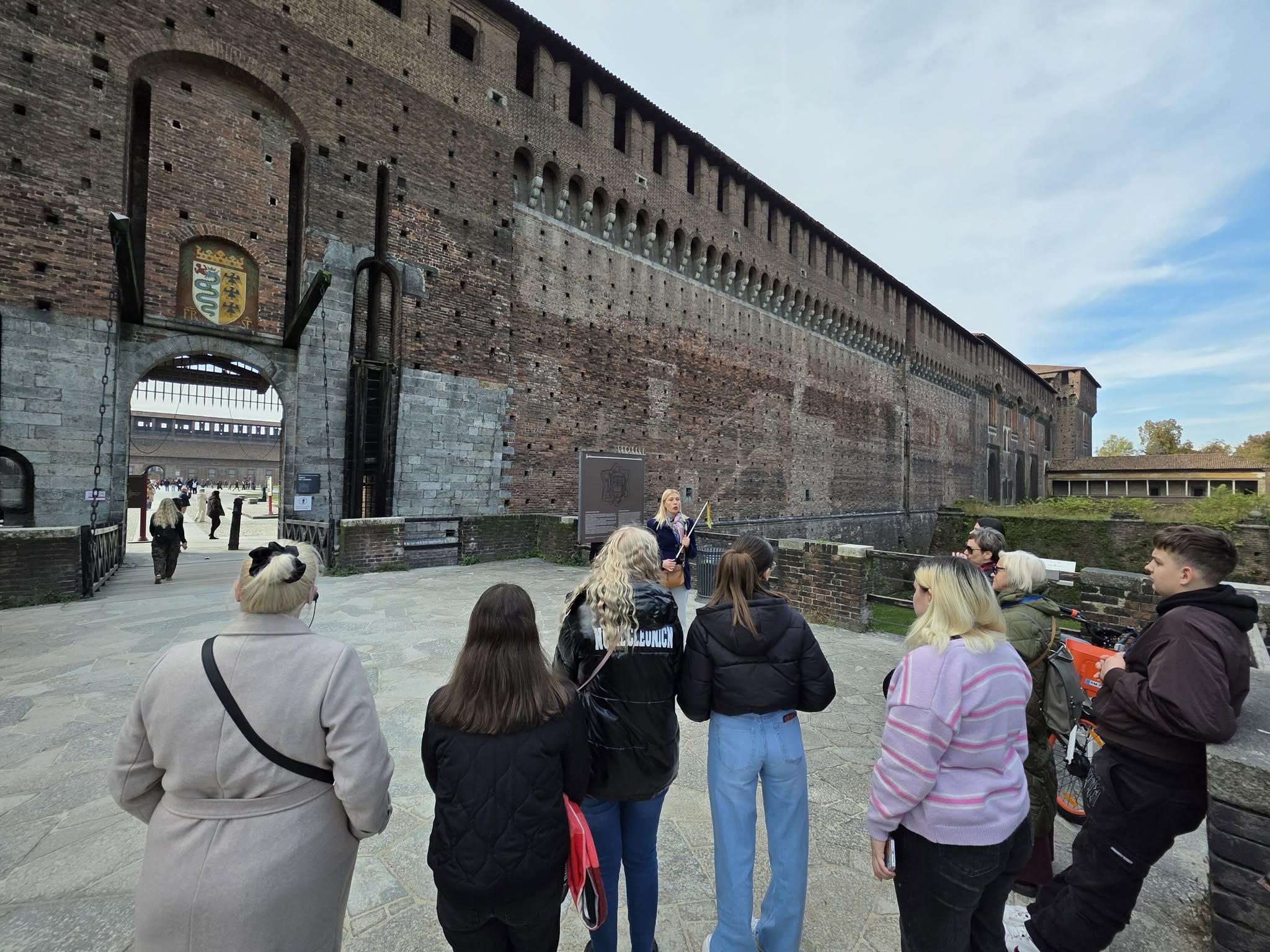Išvykos į Milaną metu aplankėme vietas, kurios mena Leonardą da Vinči, Garibaldį. Be to, vizitas Milane būtų „neįskaitytas“, jeigu nepamatytumėme bei negirdėtumėme istorijos apie La Scalos operos teatrą bei miesto aikštę „Piazza dei Mercanti“ („Prekeivių aikštė“). Viduramžiais tai buvo pagrindinė Milano turgavietė ir miesto širdis. Čia vyko prekyba, teismai ir miesto tarybos posėdžiai. Ši vieta dar svarbi ir tuo, kad ant sienos yra išlikęs šerno atvaizdas. Pasak senos legendos, Milanas savo pavadinimą ir simbolį gavo iš baltai plaukuoto šerno, vadinamo „scrofa semilanuta“ (išvertus – pusiau vilnonis šernas). Senovėje, dar prieš romėnų laikus, šioje vietovėje gyveno keltų gentis insubriai. Jų vadas Bellovesus (Bellovėzus), atvykęs iš Galijos, ieškojo vietos naujam miestui. Kai jis atvyko į Lombardijos lygumą, vietos žyniai pasakė, kad miestą reikės įkurti toje vietoje, kur pamatys ypatingą žvėrį: baltu kailiu padengtą šerną. Vieną dieną Bellovesus iš tiesų pamatė tokį gyvūną – šerną, kurio priekinė kūno dalis buvo apaugusi baltais plaukais, o užpakalinė likusi plika. Tai buvo laikoma dievų ženklu. Ten ir buvo įkurtas naujas miestas – dabartinis Milanas.