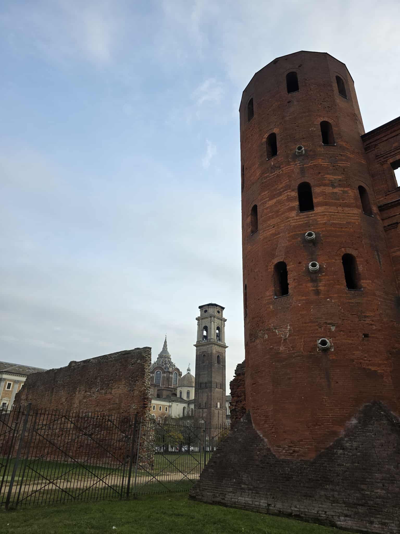 Turino miesto istorija siekia 9 m. prieš Kristų. Jis įsteigtas kaip romėnų kolonija ir buvo vadinamas Augusta Taurinorum. Kolonija buvo apjuosta sienomis. Romėnų sienos sudarė kvadratą arba beveik kvadratą (vienas kampas truputį „nukirstas“), apytikriai 700 × 750 m plotą. Sienos, kurių aukštis apie 5, o storis apie 2 metrai, buvo reikalingos apjuosti kolonijos centrą, formuoti miesto ribas, kontroliuoti įvažiavimus. Sienose buvo keturi pagrindiniai vartai (romėniško miesto stilius: „porta praetoria“, „porta decumana“, „porta principalis dextra“, „porta principalis sinistra“). Geriausiai išlikę Porta Palatina vartai (vadinami „Porta Principalis Dextra“). Juos apžiūrėjo, aptarė ir Erasmus+ programos projekto mokiniai. Taip pat ieškojo tokių gynybinių sienų ir vartų atitikmenų Lietuvoje. Pažintis su istoriniais objektais leidžia formuoti suvokimą, kad mes esame tik grandis tarp praeities ir ateities, kad reikia saugoti istorinę atmintį.
