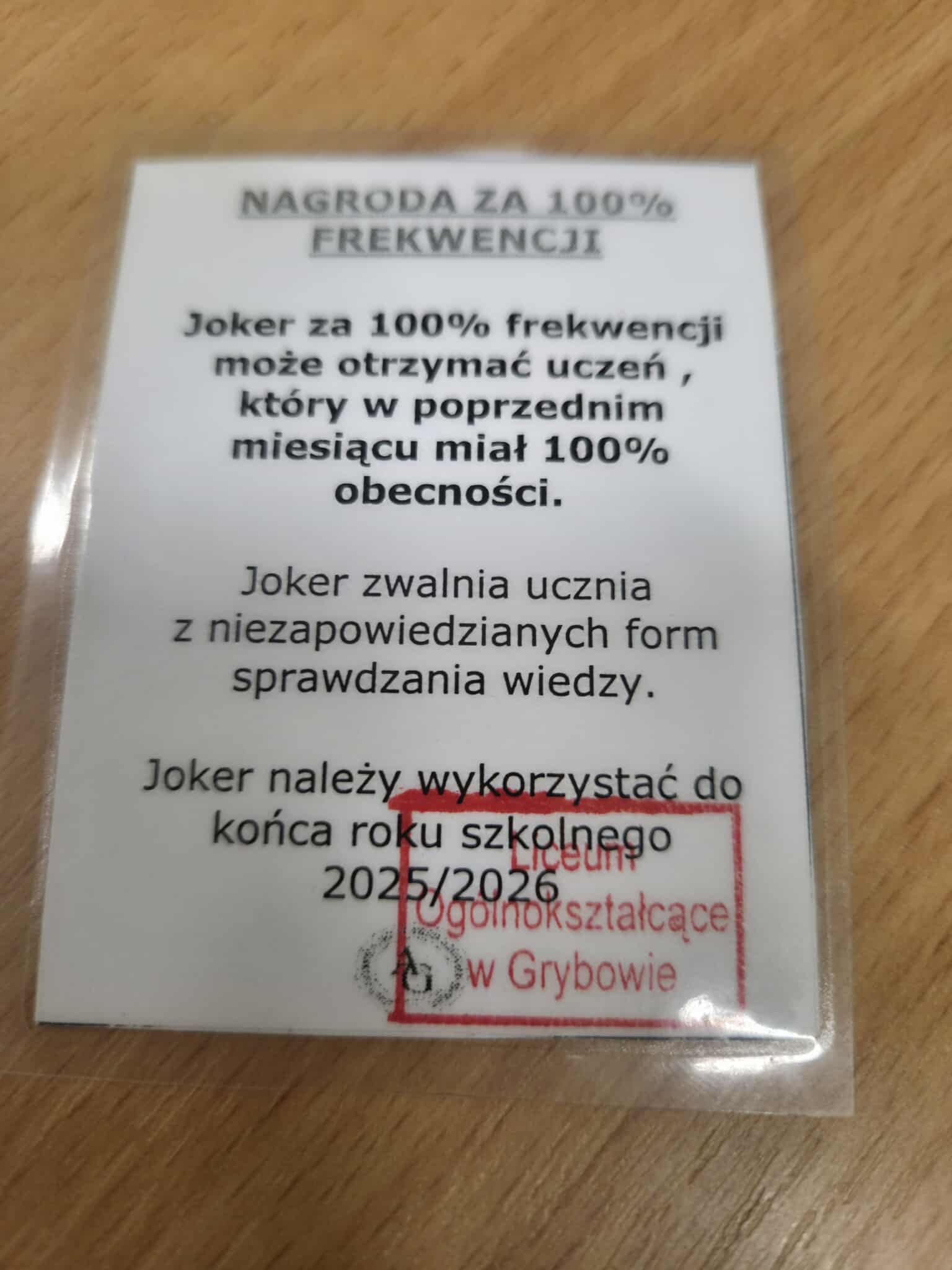 Ar kortos gali tapti stimulu lankyti licėjų? Iš pirmo žvilgsnio atrodytų, jog turėtumėme sulaukti atsakymo ,,ne“. Priešingą poziciją patyrė Erasmus + programos projekto mokiniai Grybowo licėjuje. Šioje institucijoje mokiniai, per mėnesį nepraleidę nė vienos pamokos, gauna juokdario kortą. Ji gali būti panaudota vieną kartą per mėnesį: mokinys, pakviestas atsakinėti ir nemokėdamas ar neatlikęs užduočių, duoda mokytojui šią kortą ir taip „apsisaugo“ nuo nepatenkinamo pažymio. Licėjaus direktorius Tomasz Walicki teigia, jog ši skatinimo priemonė labai veiksminga. Be to, tikybos pamokos įrodė, jog tikėjimas – neatskiriama kiekvieno lenko gyvenimo dalis. Pamokas veda du kunigai: vienas tikras mokytojas, o kitas – praktiką atliekantis seminaristas. Didelis administracijos ir mokytojų dėmesys kiekvienam mokiniui sukuria didžiulę pridėtinę vertę: mokinių akademinės žinios labai aukštos, emocinė būsena saugi. Taip jautėsi ir mūsų mokiniai: „Mokiniai buvo draugiški ir pagarbūs, labai gražiai bendravo, jautėmės kaip rojuje “.