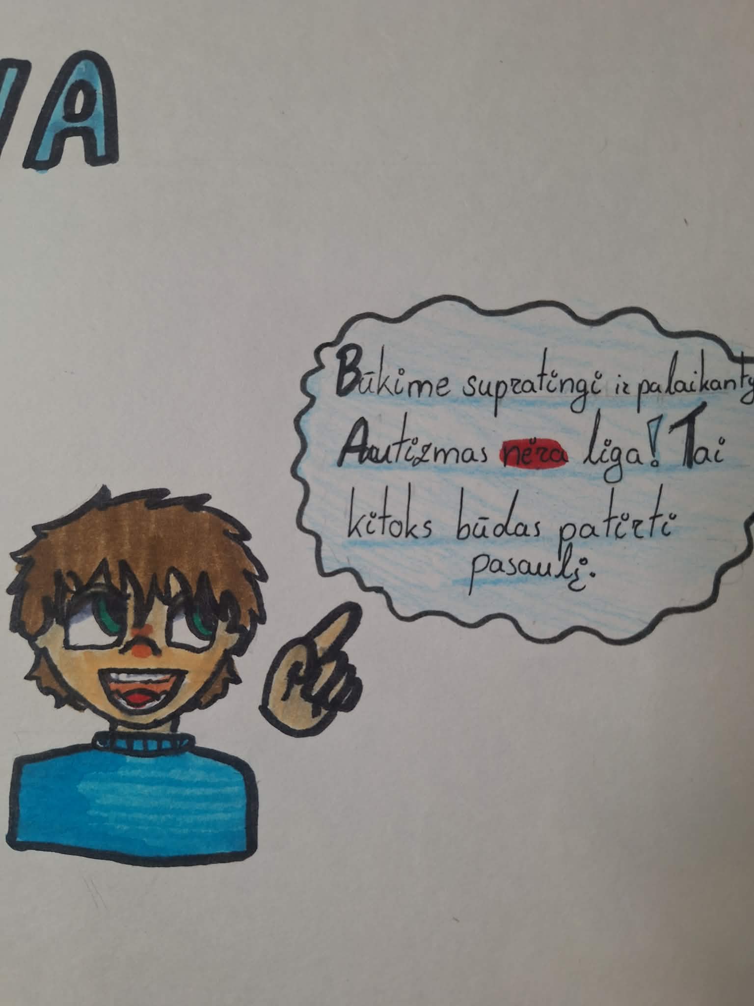 2008 m. Jungtinių Tautų Generalinė Asamblėja balandžio 2-ąją paskelbė Pasauline autizmo supratimo diena. Autizmas – tai ne liga, o kitoks, savitas pasaulio matymas ir pojūtis. Tai diena, skirta priėmimui, palaikymui ir draugystei! Mūsų mokinė Miglė šiai dienai skyrė ypatingą dėmesį. Ji ne tik pati domėjosi ir gilino žinias apie autizmo spektrą, bet ir paruošė visai mokyklos bendruomenei informatyvų stendą. Taip pat mokinė paruošė testą, kuris padės pasitikrinti žinias ir galbūt sugriauti keletą mitų. Kviečiame visus stabtelėti prie stendo, nuskenuoti QR kodą ir skirti minutę savišvietai. Supratimas prasideda nuo žinojimo, o draugystė – nuo priėmimo.