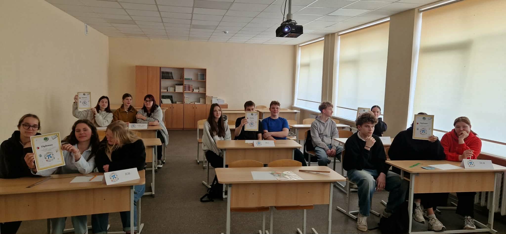 Vėliau mokiniai įsitraukė į smagią viktoriną „π – magiškas skaičius“. Dalyviai rungėsi ne tik teorinėmis žiniomis, bet ir praktiniais įgūdžiais, parodančiais, kaip pi pritaikomas kasdienybėje. Šis renginys dar kartą įrodė, kad matematika ir fizika gali būti įdomios ir įtraukiančios!
